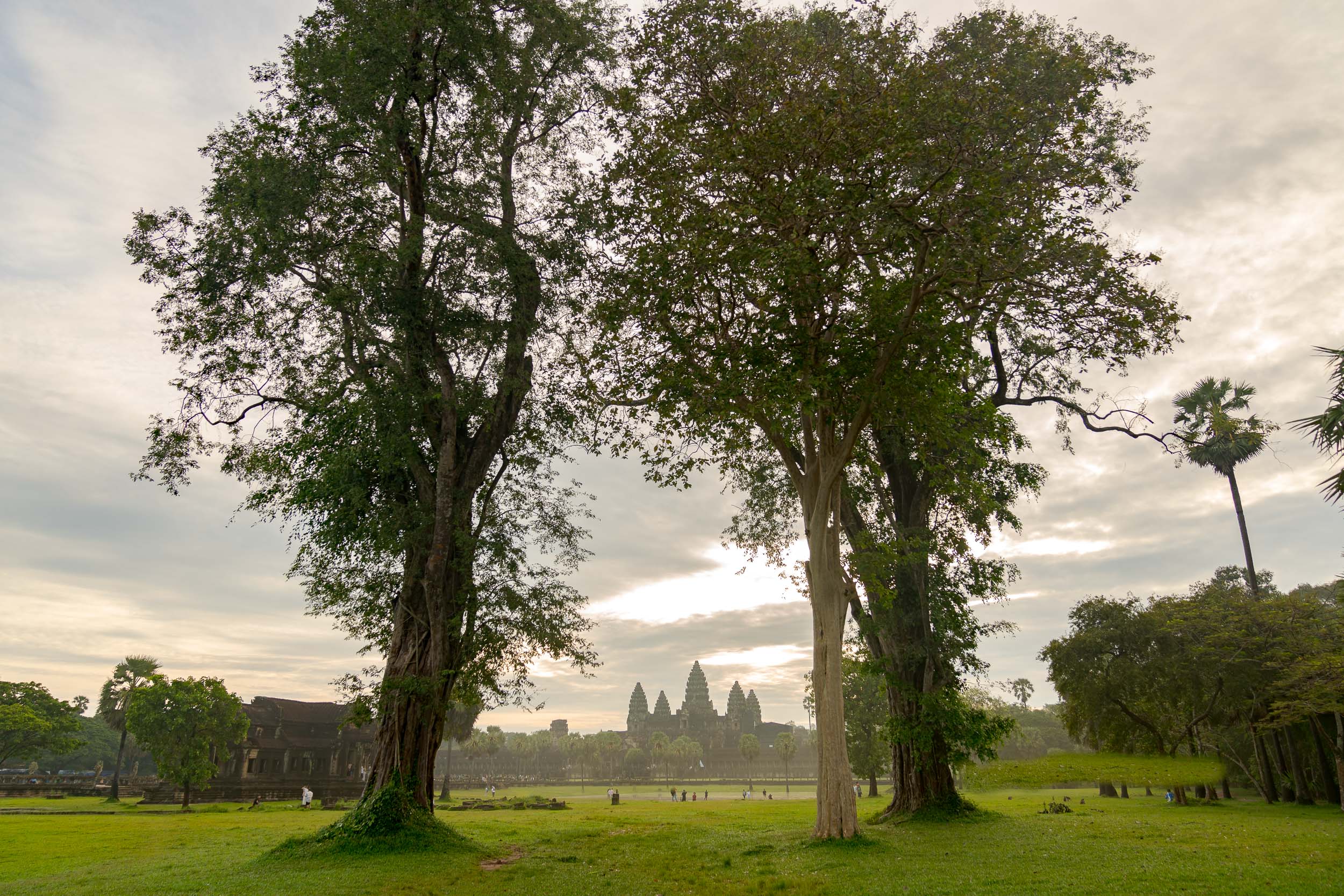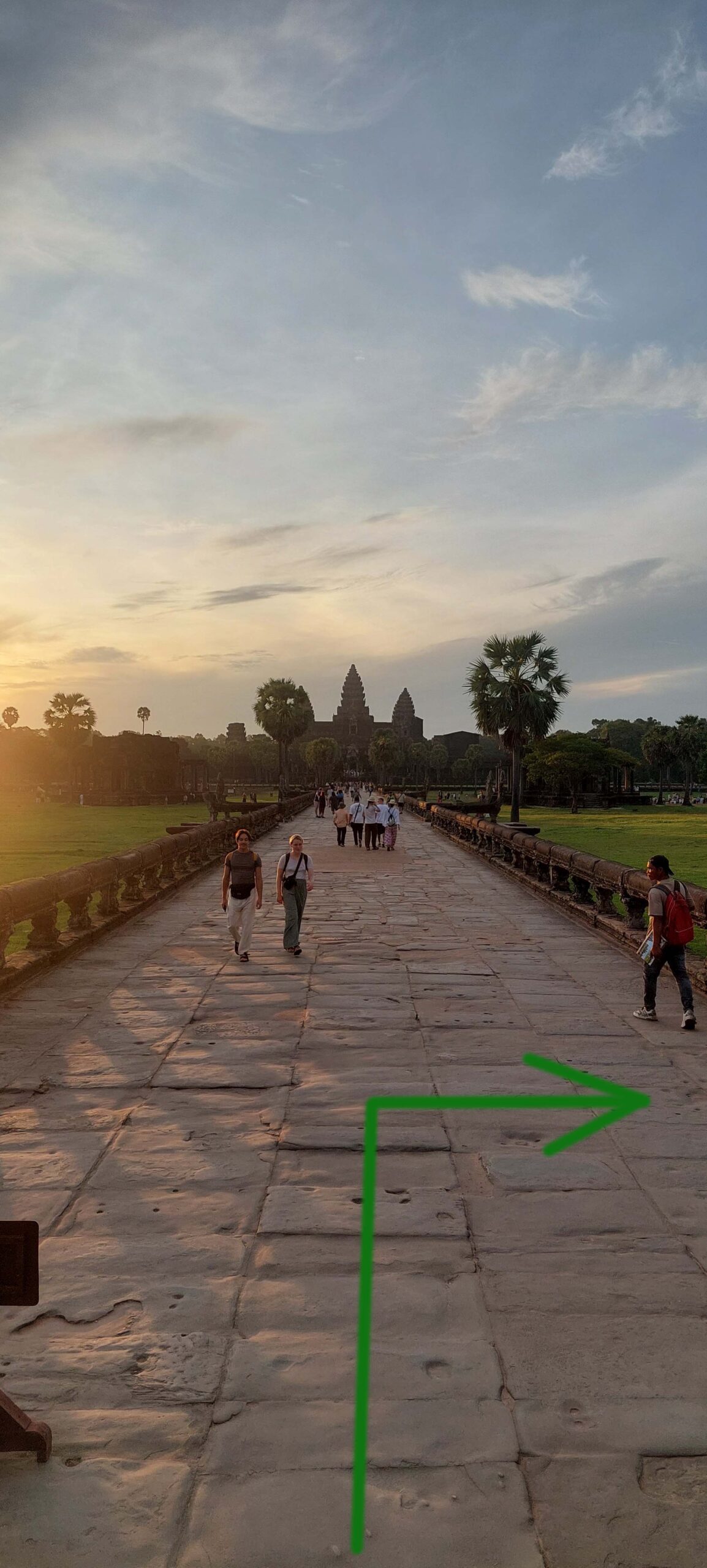 You should then turn to your right, after you enter the main area of Angkor Wat and you can see the main towers, and walk towards the grassy area below: